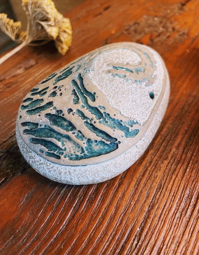 El proceso para conseguir su acabado pasa por la elección del material, el plasmado del boceto en su superficie, el grabado en profundidad, el lijado y finalmente el pintado con pinturas especiales, consiguiendo una terminación sin aristas en la que se adecúa el dibujo, retrato, logotipo… al perfil de la piedra o se graba en toda su superficie.